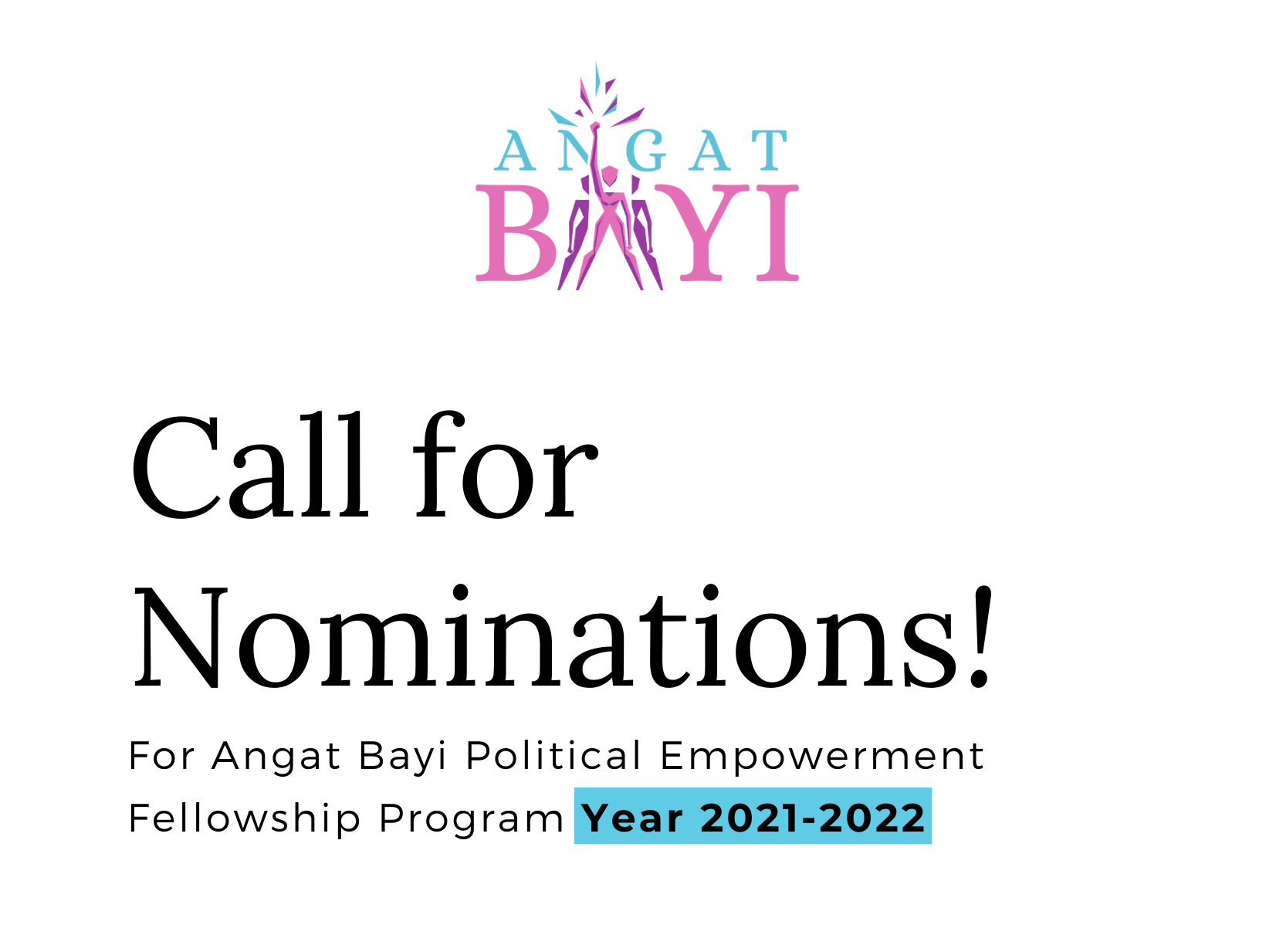 [NOTE: The deadline for nominations for the Angat Bayi Women’s Political Empowerment Fellowship is extended until 19 February 2021 (Friday), 11:59 PM (GMT+8/Philippines Time).]