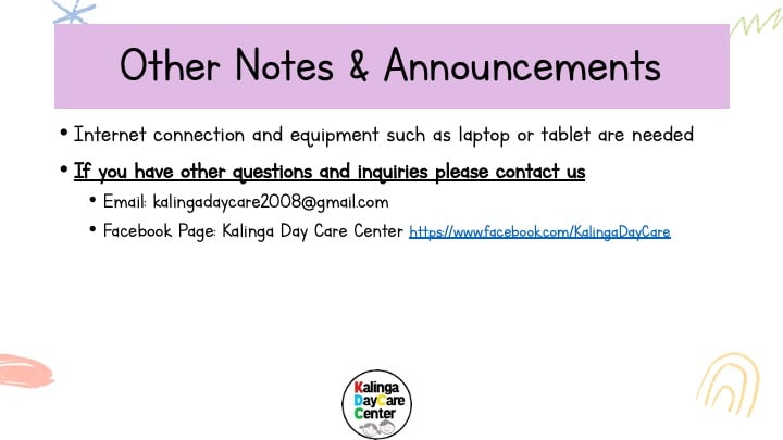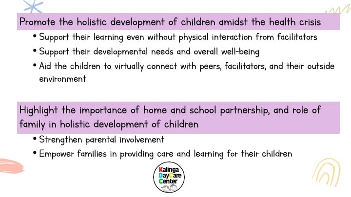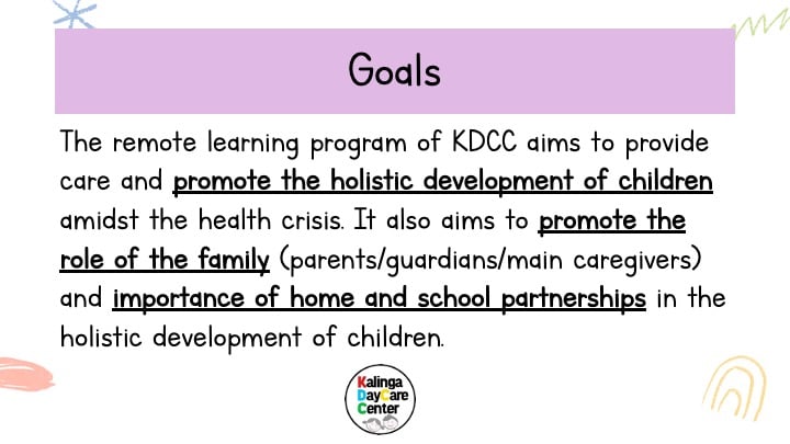 The Kalinga Day Care Center (KDCC) will continue its services to the community by having online sessions. There may be no physical interactions but KDCC aims to provide psychosocial care through our virtual interactions, and carefully planned activities.