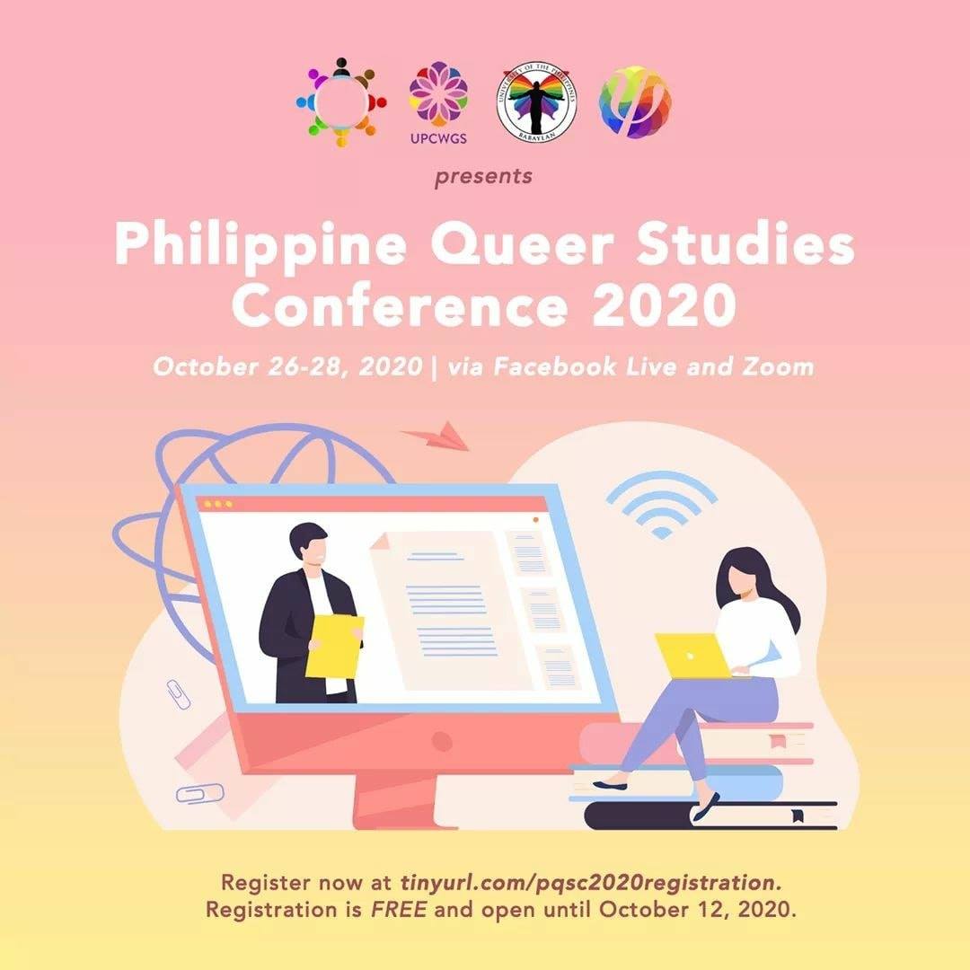 The University of the Philippines Center for Women’s and Gender Studies (UPCWGS), UP Babaylan, and the Psychological Association of the Philippines (PAP) LGBT Psychology Special Interest Group, in partnership with the UP Diliman Department of Sociology, present the first national LGBTQI research conference, Philippine Queer Studies Conference (PQSC) 2020, which will be held on 26-28 October 2020 in a synchronous online format through Facebook Live and Zoom. Register now at https://tinyurl.com/pqsc2020registration. Registration is FREE and open until October 12.
