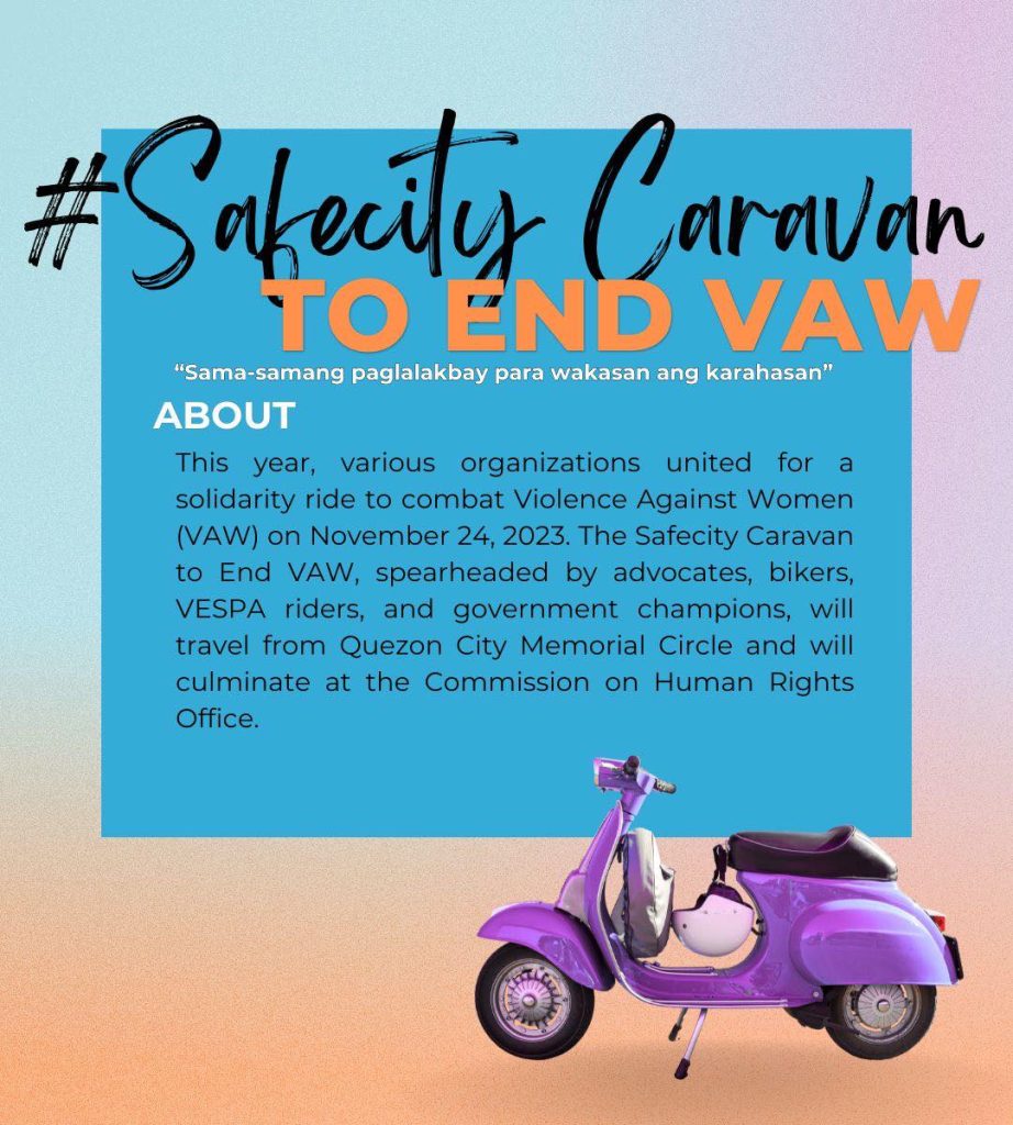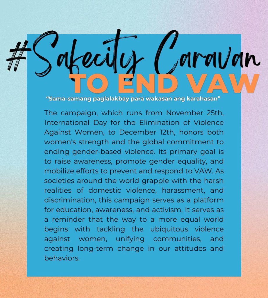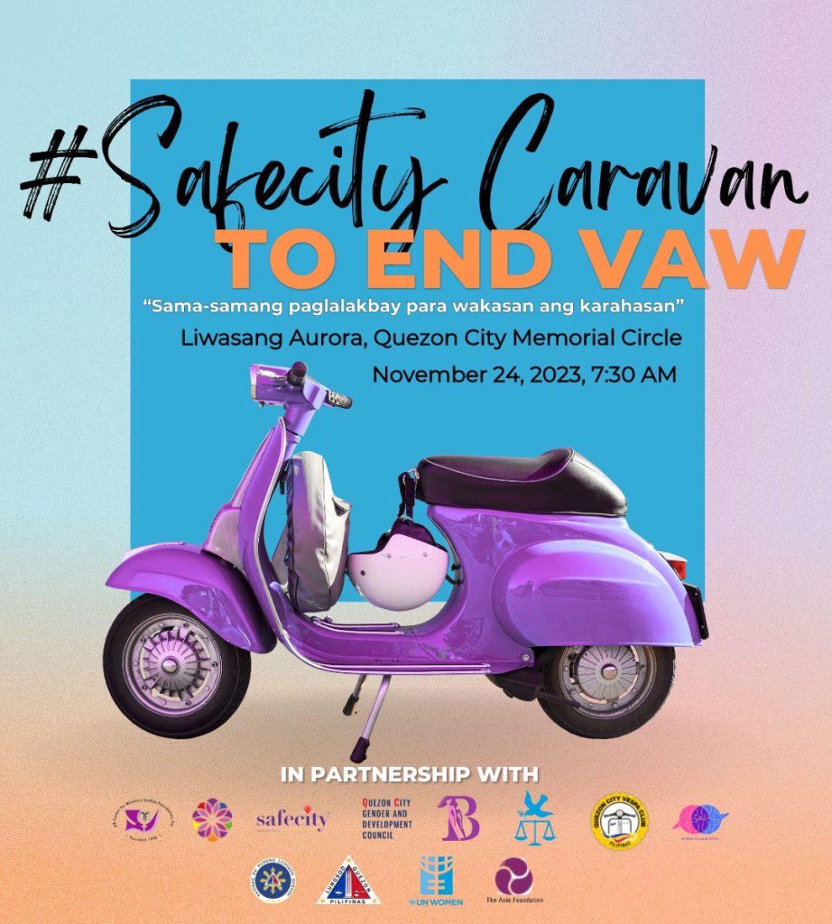 Mark your calendars and catch the #Safecity Caravan to End Violence Against Women (VAW) this 24 November 2023 (Friday), 7:30 AM at Liwasang Aurora, Quezon City Memorial Circle.