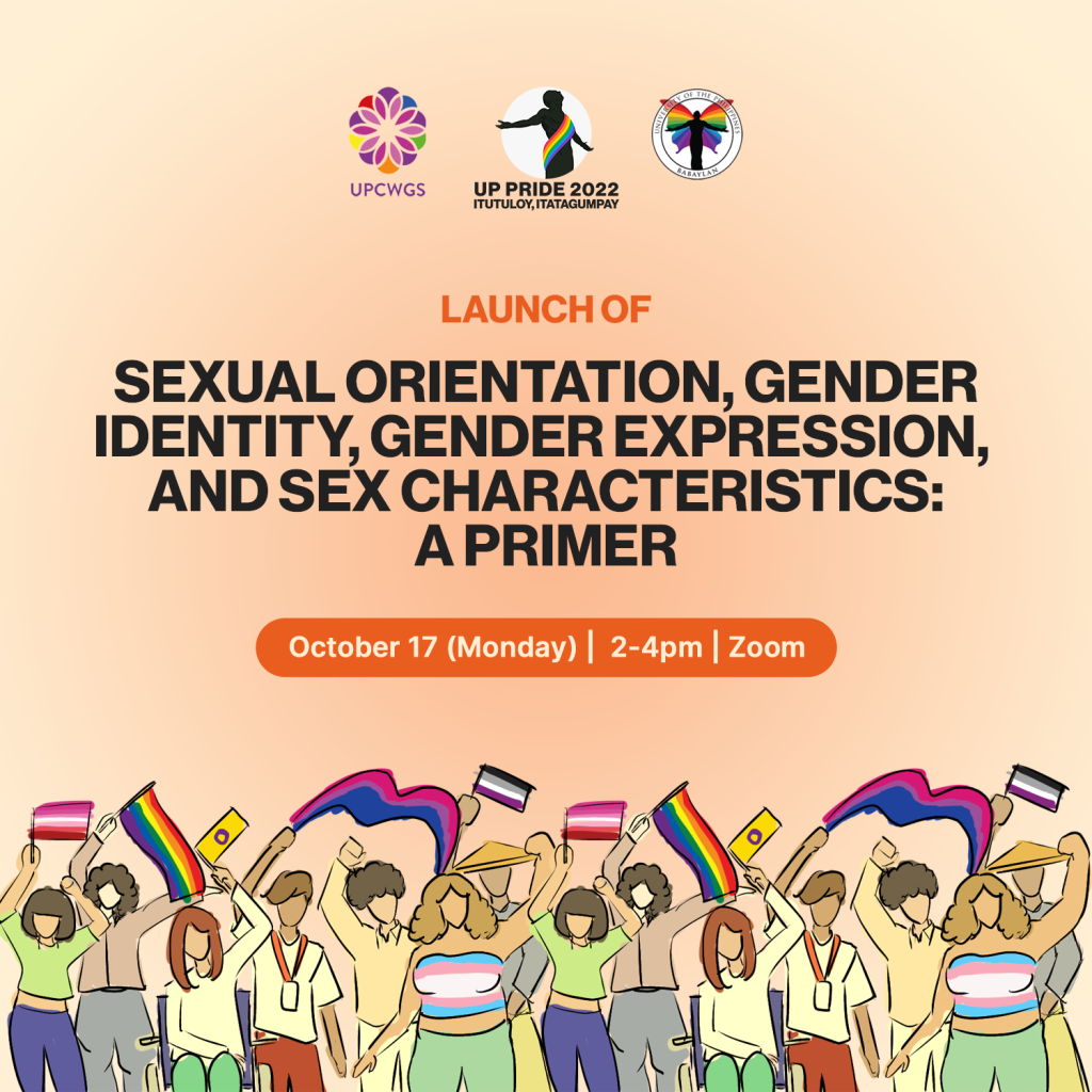 In line with the celebration of UP Pride 2022, the University of the Philippines Center for Women’s and Gender Studies (UPCWGS) is inviting everyone to its SOGIESC Primer Launch on 17 October 2022 (Monday), 2:00-4:00 PM via online.