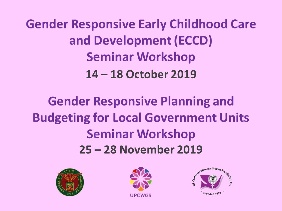 The University of the Philippines Center for Women’s and Gender Studies (UPCWGS) is organizing the following training and extramural activities for the last quarter of 2019: