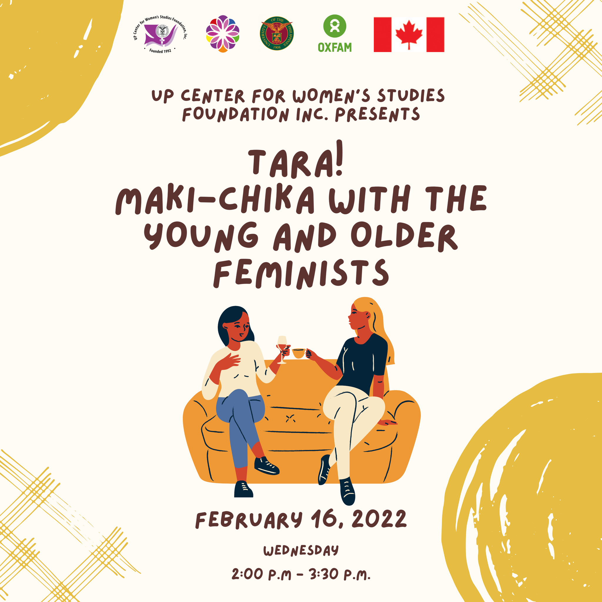 The University of the Philippines Center for Women’s Studies Foundation, Inc. (UPCWSFI) is organizing a Chikahan with Young and Older Feminists to be held on 16 February 2022 (Wednesday), 2:00-3:30 PM via Zoom. They will be sharing their insights and perspectives on, as well as their experiences with, some of the important issues of women in the country.